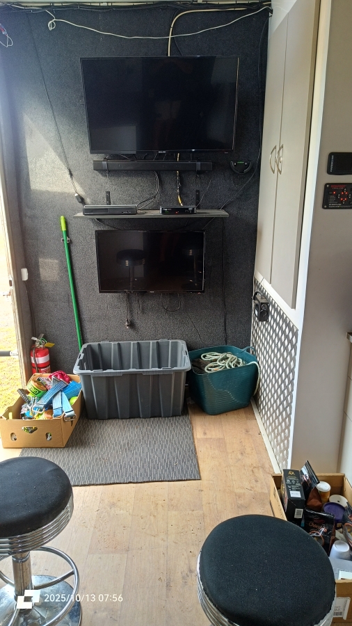 Sat dish/TV 800 liters of water passing through 2 filters) 80 ltr grey water tank Enerdrive Battery Management System, 3x200ah Lithium Batteries 240V powers; microwave, aircon, washing machine 8000 Watt generator.3000 watts inverter Invert microwave 30l Air fry oven.
